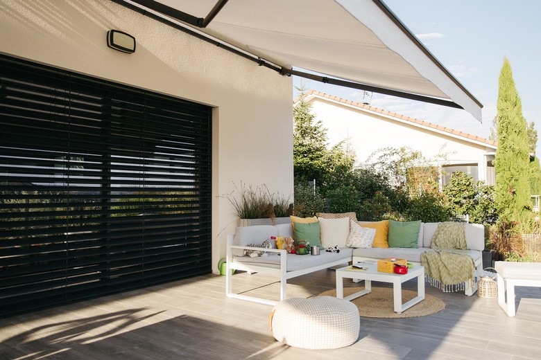 11.10.2021 Outdoor Solutions by Somfy Team Outdoor Living Made Beautiful With Somfy's range of outdoor solutions, you can protect your outdoor space and increase your comfort. With lifestyles shifting to spending more time working and relaxing at home, having an outdoor oasis is a coveted feature in Australian homes. External blinds, roller shutters, and awnings can all enhance the beauty and function of your outdoor space. Understanding the benefits of every outdoor shading solution will help you make the best decision for your home, style, and budget. Take a look at Somfy's motorised solutions for external blinds, roller shutters, and awnings. Outdoor Blinds: Effective, Adaptable and Affordable Outdoor window blinds or external screens provide shade, privacy, and functionality to your home. For outdoor spaces that need more privacy, external blinds give a level of finesse over how much can be seen, depending on their material and how far they are retracted. Not only do they provide shade and privacy, but they can enclose your outdoor space, protecting it from flies and mosquitoes, while also acting as an extension of your home with the addition of an outdoor room. You can open and close them with the click of a remote control or by using an app on your phone. Alternatively you can automate them to open and close on a schedule or based on the outdoor temperature. Available in a wide variety of styles, exterior blinds can suit any landscape or outdoor decor aesthetic. Roller Shutters: A Low-Maintenance and Sturdy Outdoor Shading Option Roller shutters are best suited for those looking for a low-maintenance outdoor shading option. They are not only great for privacy and home protection, but are a good source of insulation for the inside of your home. With their sturdy build, roller shutters are especially suited for outdoor spaces with high wind or rain and need a window covering that can withstand these weather conditions. Like outdoor blinds, Somfy also offers many ways to control your roller shutters or set and forget for ultimate convenience. Awnings: Block the Fiercest Glare and UV The glare and heat of the midday sun beating down can discourage anyone from stepping outside. Awnings are specifically designed to block maximum glare and UV rays when the sun is at its peak. However, because they are situated so high overhead, awnings don’t interrupt the lovely views of your garden or outdoor space. Retractable awnings have the added benefit of also blocking out the low rays of the setting sun, creating the perfect ambiance for a dinner party without the sun glare. With motorised retractable awnings, you can use a remote control to extend when the light starts to beat down, and then retract them once the glare has passed. Get Maximum Protection for Your Outdoor Spaces With Somfy's range of blinds, shutters, and awnings you can protect your outdoor spaces from sun and bad weather and make them more comfortable to use without sacrificing style, convenience, and design. Contact your local Somfy provider to learn which outdoor shading solution best suits your home and lifestyle. Fill out the form to get in touch. Find out more Categories Outdoor Solutions Tags Roller Shutters Sensors Controls Awnings External Screens Please accept cookies to leave a comment Accept cookies Please enable JavaScript to view the comments powered by Disqus.